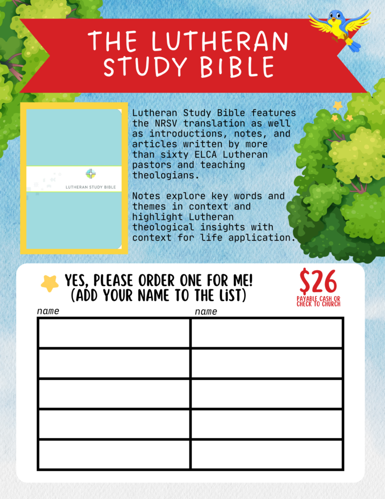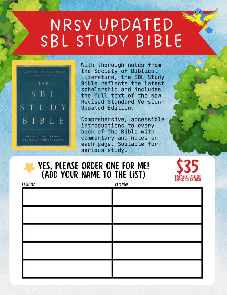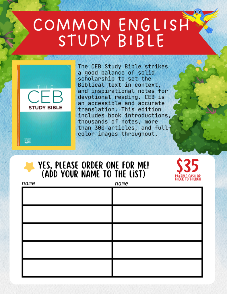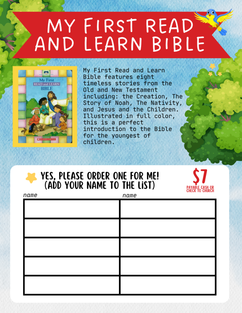 For the next two Sundays we are holding a Bible Sale, inspired by the Scholastic Book Fair! We have a variety of Bible styles available for you to browse and purchase. If you’d like to order one, simply add your name to the list. All orders must be submitted by December 1. Maybe you already have a bible at home, but this could be a great opportunity to update it or purchase a bible for a loved one as a special Christmas gift.