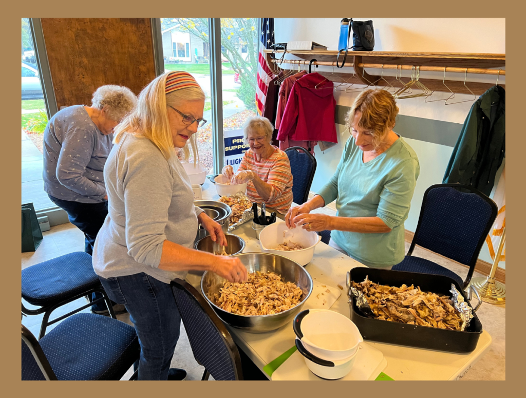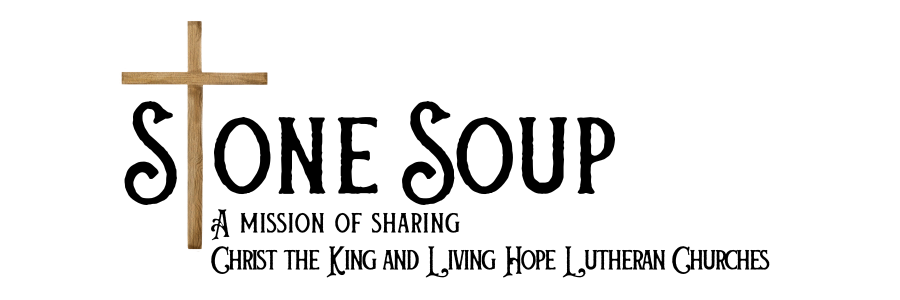 The two churches, Christ the King Lutheran in Port Washington, Wisconsin and Living Hope Lutheran in Saukville, Wisconsin gather a group of volunteers together to create delicious soups that we then pack and share with local food pantries. We call it Stone Soup, A Mission of Sharing.