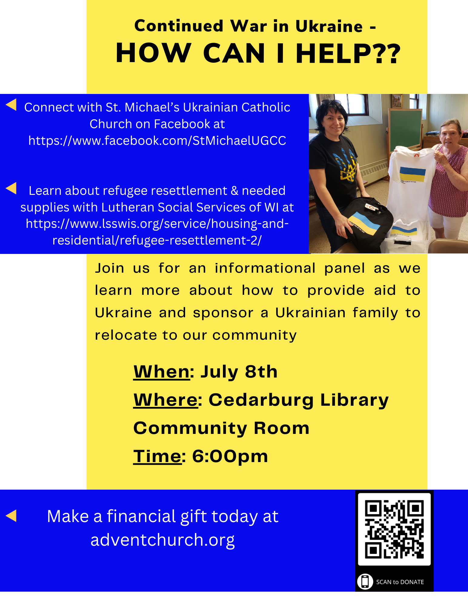 Are you passionate about refugee ministry? If so, please see the flyer above about an upcoming informational panel discussion on ways you can help with the ongoing situation in Ukraine. Link for more information is here.